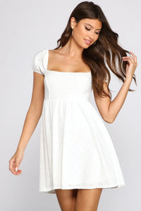 Mesmerizing Beauty Puff Sleeve Eyelet Skater Dress