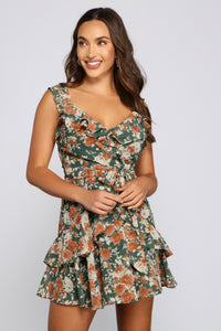 You'll look like such a cutie in this adorable floral mini dress! It features a subtle sweetheart neckline with a mini tie-front at the bust, short puff sleeves, and a mini-length, curve-hugging silhouette. Style this dress with your fave pair of sandals.