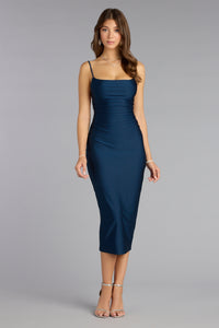 Sleek, sculpted, unstoppable—this midi dress sets the tone for every RSVP on your calendar. The ruched mesh hugs in all the right places, serving body and confidence with zero effort.