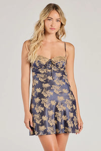 Once you lock eyes on this floral satin dress, you'll never let it go! Featuring a delicate lace trim on the sweetheart neckline and a flattering A-line silhouette, this dress is perfect for any occasion. The underwire bust provides support and the adjustable spaghetti straps and tie-back design ensure a perfect fit. Complete the look with stiletto heels.