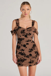 Gorgeously Chic Flocked Floral Cold-Shoulder Mini Dress