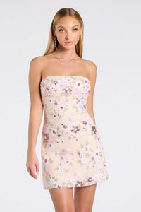 Shimmer and shine in this gorgeous floral sequin mini dress with a lace-up back that turns heads and flattering A-line fit for a unique look at garden parties, bridal showers, and dates!