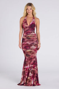 Kelsey Halter Printed Mermaid Formal Dress