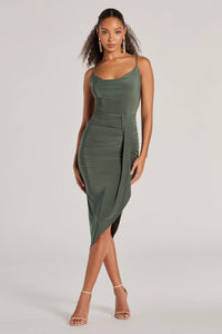- High side slit with ruching