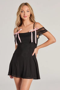 Treasured Poise Cold-Shoulder Bow A-Line Mini Dress