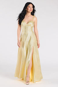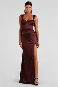 Melika Bustier Slit A-Line Satin Formal Dress
