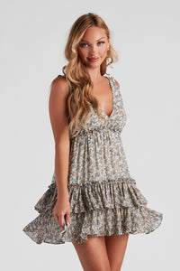 Take your summer crush by surprise when they see you in this flirty floral skater dress! It features a sleeveless, v-neck, ruffled trim shoulder straps, a low-cut back with zipper closure, and a tiered, flowy hem with ruffles. Complete the look in sandals for a day date.