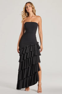 Sweep everyone off their feet in the Shianna strapless formal dress at weddings, banquets, or galas! She features a strapless crepe neckline, chiffon ruffled A-line silhouette and flattering floor-length hem. You'll feel like a true work of art as you effortlessly glide through any formal occasion in this stunning dress! Complete the look with earrings, a clutch, and strappy block heels.