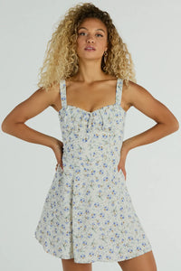Slip into the romantic vibes of this floral chiffon mini dress for day dates to shower celebrations! The dress flaunts a pretty corset bodice and lace-up back that turns heads, while the A-line silhouette flatters your figure.