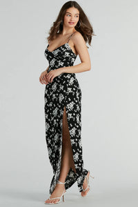 Sweet Mood High Slit Floral Knit Maxi Dress