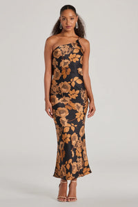 Sensational Sultry One-Shoulder Floral Satin Maxi Dress