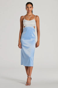 Perfect Pairing Tie Back Color Block Satin Midi Dress