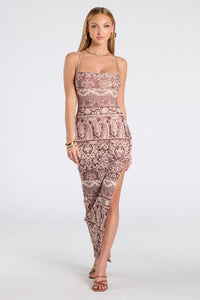 Sun Coast Dream Paisley Bodycon Slit Maxi Dress