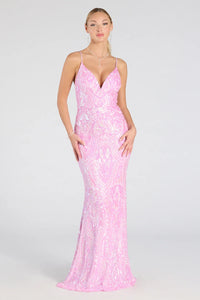 For a special evening out the Shelby sequin formal dress is sure to deliver! Boasting a lace-up back that turns heads and a high front slit for effortless allure all night long.