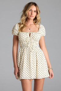 Show off your charm in this bow print skater dress boasting flirty details like puff sleeves and a short-length hem perfect for styling with sandals.