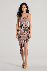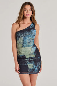 Remarkable Vibe One Shoulder Printed Mesh Mini Dress