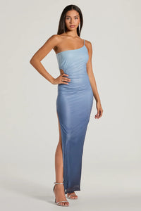 Sparkle and make every room shimmer in the Gretchen glitter formal dress at celebrations and black-tie events! The striking floor-length gown boasts a sexy halter plunge U-wired neckline, a slim form-hugging bodice, and a high front slit along the column silhouette to show some skin.