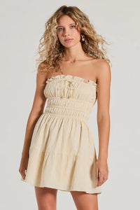 Express your true devotion to flirty style in this strapless skater dress perfect for strolling a beach city or a brunch! Featuring a flattering strapless neckline with a tie and stretchy elasticized bands for a comfortable, secure fit. The skater silhouette and ruffled mini-length hem add a touch of flirty fun. Complete the look in strappy sandals.