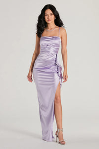 Melissa Sleeveless Ruffle Slim Satin Formal Dress