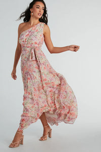 Floral Perfection One-Shoulder Chiffon Maxi Dress