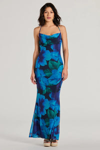 Ocean Breeze Cowl Neck Low Back Tropical Maxi Dress