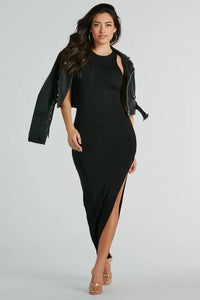 The best has come with this stylish basic maxi dress perfect for dressing up or down for any occasion! Crafted from a soft knit fabric, you'll adore this sleeveless dress for its comfort and versatility. The crew neckline gives off a classic vibe while the bodycon silhouette flaunts your curves down to the maxi-length hem with a flirty side slit for movement. Complete the look with a jacket, heels, and a crossbody bag!
