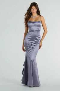 Sheryl Ruffled Back Mermaid Satin Formal Dress