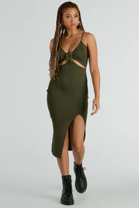 Such A Serve Cutout Strappy Ribbed Knit Midi Dress
