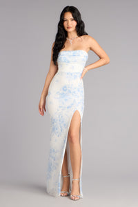 Give off major it-girl vibes in this sequin abstract print corset mini dress! The stretchy lined mesh fabric is accented with a mesmerizing abstract print and all-over clear sequin embroidery for an iconic sheen effect. The mini-length dress features a strapless angled neckline with flexible boning inserts for a snatched fit, a corset-inspired vertical seam design down the front and back, and a bodycon silhouette to flaunt your stunning figure. Style with combat boots for a concert!