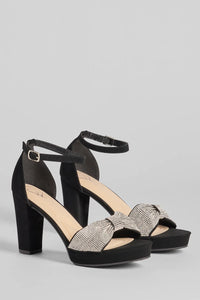 Gift Of Glam Rhinestone Bow Strap Platform Heels