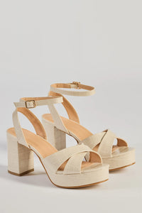 Stylishly elevate your night-out looks with these chic platform heels featuring an open almond-shaped toe with a strap, a thin adjustable ankle strap, and a tall block heel. Complete your outfit with a sleek clutch.