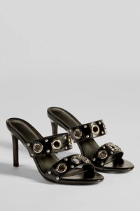Stylish Edge Studded Strappy Stiletto Mules