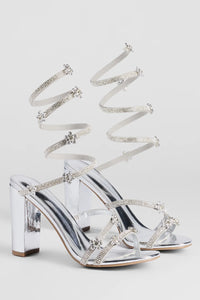Sparkly Stride Metallic Spiral Strap Stiletto Heels