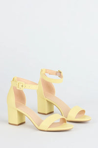 Step out in these chic faux leather low block heels featuring an almond-shaped toe and an adjustable ankle strap with a buckle detail.