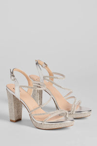 • Stepping Out Rhinestone Strappy Platform Block Heels