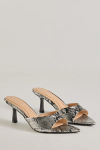 Make a sassy impression with sleek faux leather mules that feature a trendy snake print, a pointy toe, and a stiletto heel. Complete your look with an LBD and hoops for your next GNO!