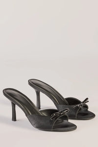 • Chic Elegance Faux Leather Stiletto Bow Mules