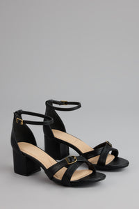 Mesmerize with low-block heels that add a chic touch to your formal outfits! The faux leather heels feature an open almond toe, a multi-strap design, mini rhinestones, an adjustable ankle strap with buckle closure, and a sturdy block heel. Complete with a sequin mini dress!
