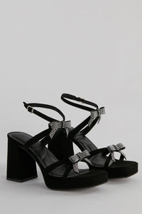 Soiree Glam Rhinestone Bow Platform Block Heels