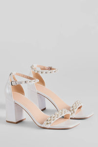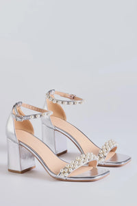 Luxe Style Pearl And Rhinestone Detail Block Heels