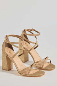 Step up your glam game with the glitzy strut glitter mesh block heels. Featuring a chic criss-cross design, adjustable ankle strap, and cushioned insole for all-night comfort.