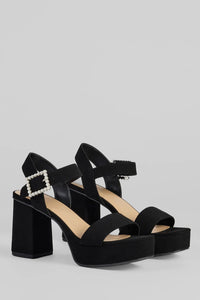 Nail the glam look with these faux pearl platform heels. Featuring a chic faux nubuck design, pearl buckle, and cushioned insole, these heels are your new go-to for effortless style.