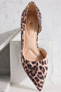 Step into fierce style in these leopard print stiletto pumps. These satin beauties feature a 4" heel and a pointed toe, perfect for strutting your stuff with confidence.