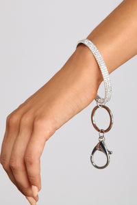Always keep your keys on hand while adding a chic sparkle to your look with this glam wristlet! It features a bracelet with three rows of rhinestone embellishment attached to a key ring and a lobster clasp closure. Pair this gorgeous accessory with your fave purse.