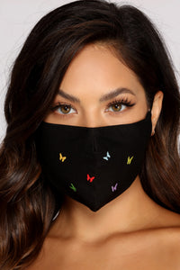 Stay safe baby girl in this face mask that won’t clash with your fit. This fluttery face mask features a breathable knit material, a mini multicolored butterfly stitch design, and earloops for a comfortable fit.