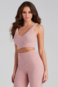 Feel oh-so-cozy snuggling up in this chenille pajama tank! Featuring a sleeveless, v-neckline and a cropped hem. Complete the look with the matching bottoms.