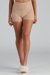 Cuddle up in these ultra-soft chenille knit pajama shorts! They feature a high-rise waist, a form-hugging fit, and offer plenty of stretch for comfortable wear. Pair these shorts with the matching pajama tank and cozy slippers.