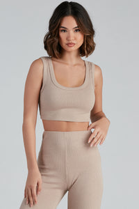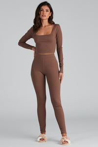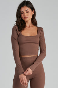 This comfy ribbed knit pajama top is perfect for those weekend lounging days! It features a scoop neckline, long sleeves, and a cropped, form-hugging fit. Complete the look with the matching pajama leggings.