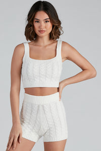 Cuddle up in these absolutely adorable pajama shorts! They feature a high-rise waist, a cable knit design, and a form-hugging fit. Complete your cozy look with the matching pajama tank.
