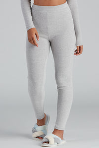 These comfy ribbed knit pajama leggings are perfect for those weekend lounging days! They feature a high-rise waist and a form-hugging fit. Complete the look with the matching pajama top.